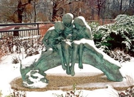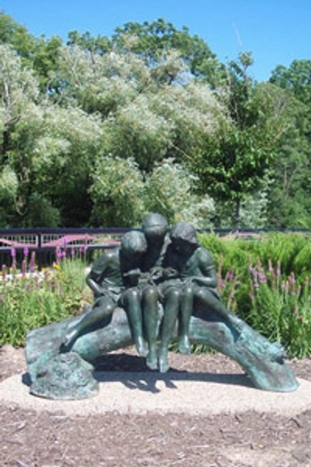 The Garden Club donated this statue to the Burlington River Walk. It is located near the Charcoal Grill restaurant on Milwaukee Ave in Burlington, WI. Funds for the statue were obtained through our annual plant sale and biennial garden tour, and our club continues to plant and maintain the garden around the statue.