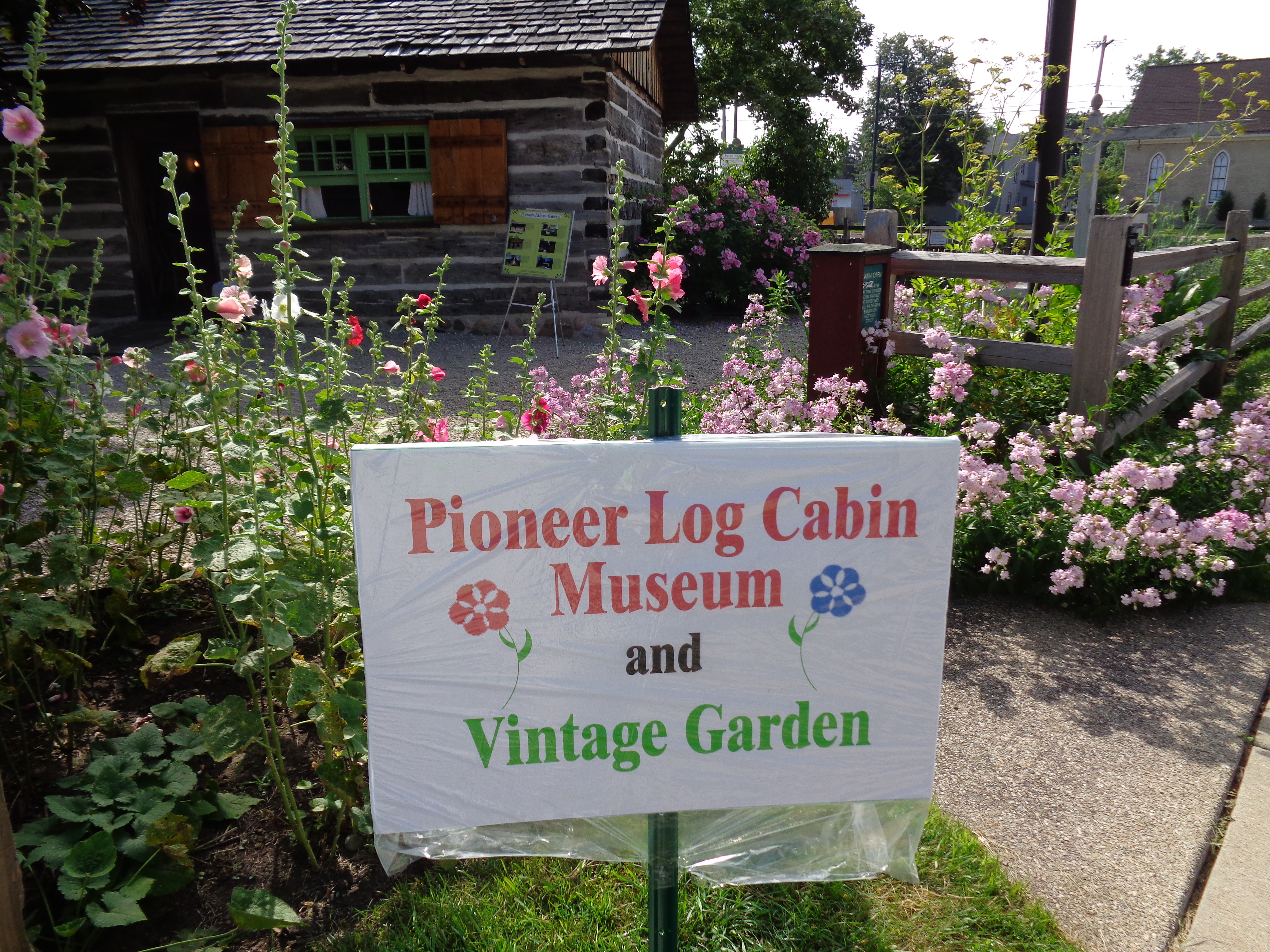 The 1850 log cabin was moved to Wehmhoff Square in downtown Burlington from its Echo Park location and officially opened on July 4, 1999. The Burlington Area Garden Club researched, planned and planted the “Vintage Gardens” which surround the Pioneer Cabin with the help of experts at Old World Wisconsin. The garden has been a master gardener project since 2000.