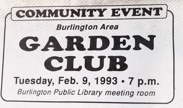 Newspaper ad for the first meeting of the BAGC – February 1993