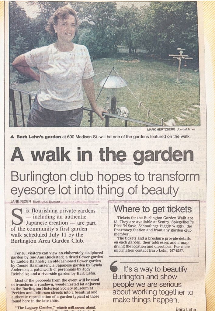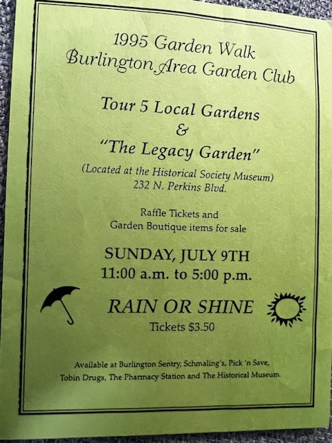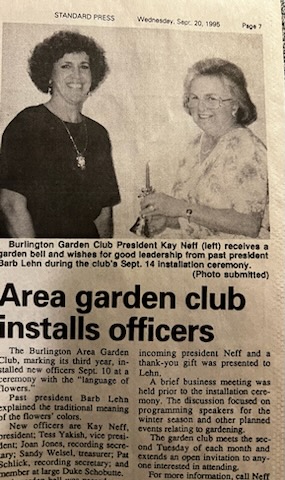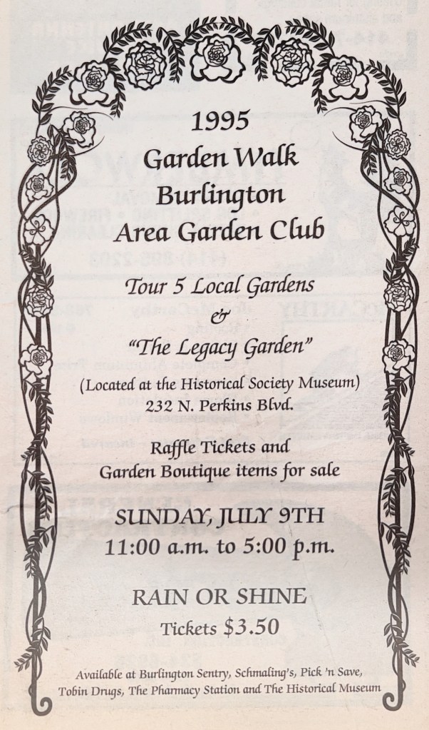 Meetings for the Garden Club were held at the Burlington Public Library – 1995