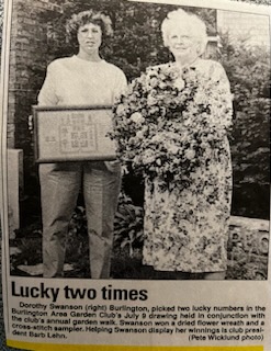 Lucky raffle winner Dorothy Swanson, who won 2 prizes at the 1995 Garden Walk – 1995