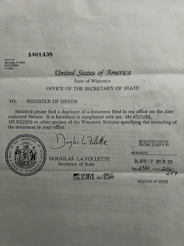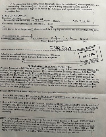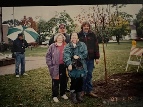Planting a tree at Wehmhoff Park – The species of the tree was discovered by Michael Yanny who holds the patent. The tree was donated by Johnson’s Nursery in Menominee Falls. Since the patent arrived on St. Patricks Day, Michael Yanny christened the tree The Leprechaun. – March 1995