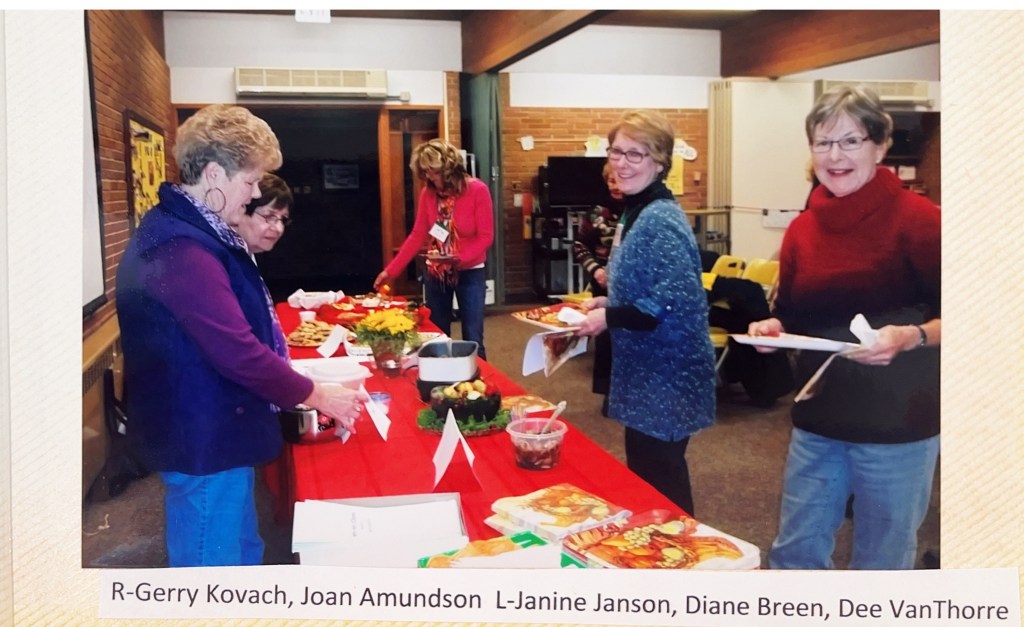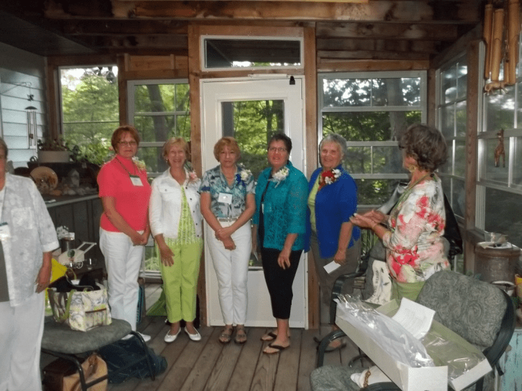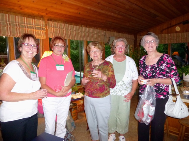Installation of Officers: Marcia Ludwig, Secretary; Ellen Brenton, Secretary; Dottie Klein, Treasurer; Jean Kopstein, Vice President; Mary Cichocki, President (with Barb Lehn, right) – August, 2013