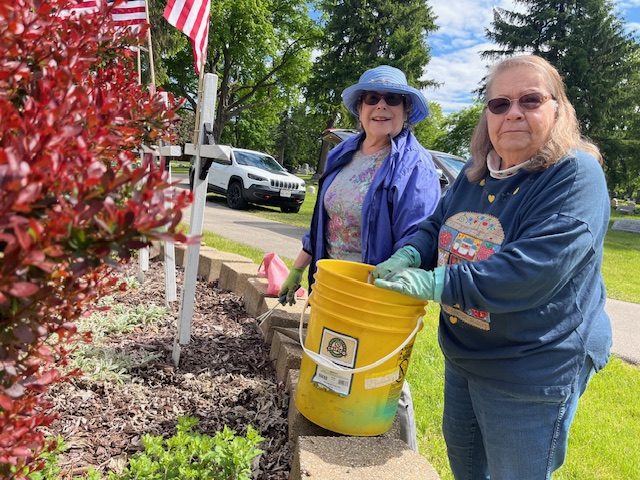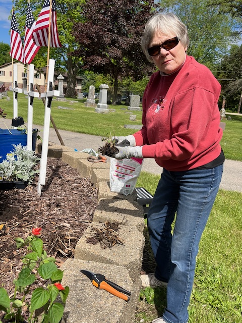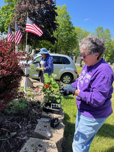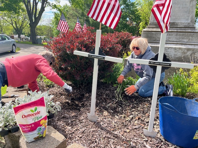 Planting at the war memorial monument in the Burlington Cemetery – May 2025