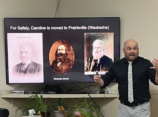 Dan Meddaugh at our November meeting speaking about the Underground Railroad in Burlington, WI and some of the key players who were involved in this area – November 2025